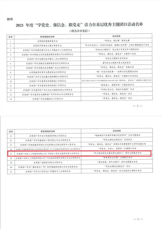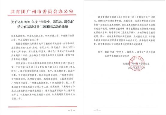 近日,经团省委综合评审,广州市有20个团(工)委和21个团(总)支部获评2021年度“学党史、强信念、跟党走”活力在基层优秀主题团日活动。XK在线平台团委申报项目“牢记使命跟党走 服务群众践初心”青年志愿服务活动榜上有名,受到团市委表扬。
