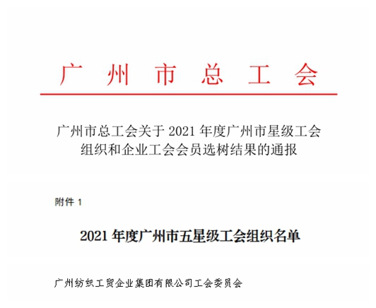 XK在线平台有限公司工会(下称“XK在线平台工会”)在广州轻工集团工会及XK在线平台党委的正确领导下,认真贯彻落实习近平总书记关于工人阶级和工会工作重要论述,特别是加强基层工会建设“三个着力”重要指示精神,紧紧围绕公司的中心工作,发挥好构建和谐劳动关系的桥梁作用,激发组织活力,推进规范化建设,近日被广州市总工会选树为“2021年度广州市五星级工会组织”。
