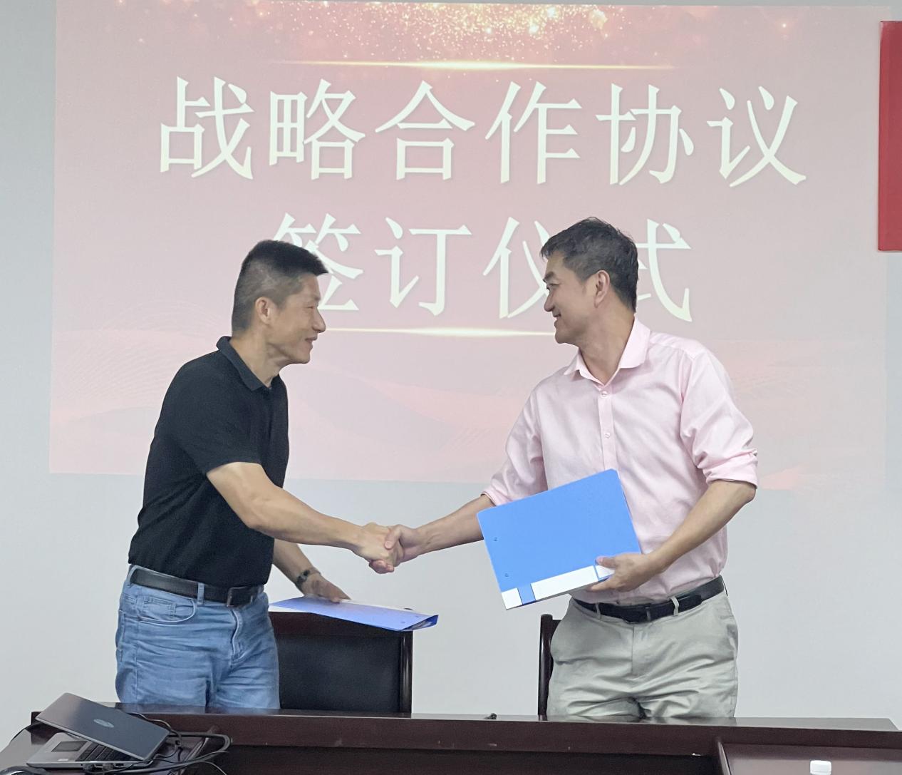 (利工民公司总经理郑力强,优布公司总经理包志东分别代表双方在战略合作协议上签字)