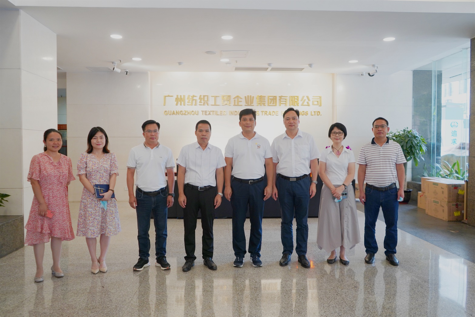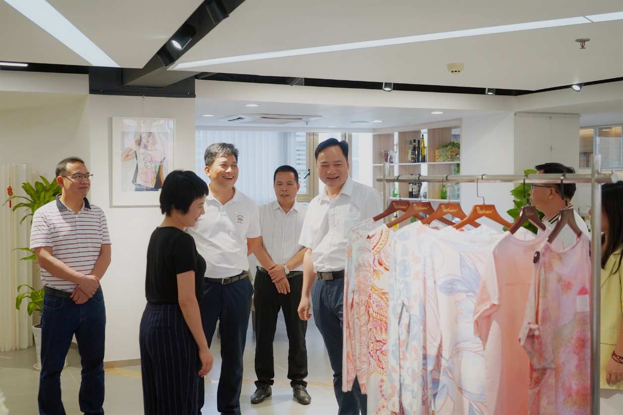 随后,双方进行了座谈。葛伟志向对方重点介绍了公司在纺织服装供应链方面的优势。甘德权对此次考察主题作了进一步阐释,他希望能借助粤港澳大湾区纺织服装龙头企业的力量,助力位于平南县的“贵港纺织服装时尚新区”建设,同时盛情邀请XK在线平台到平南县实地考察、交流,洽谈合作。
