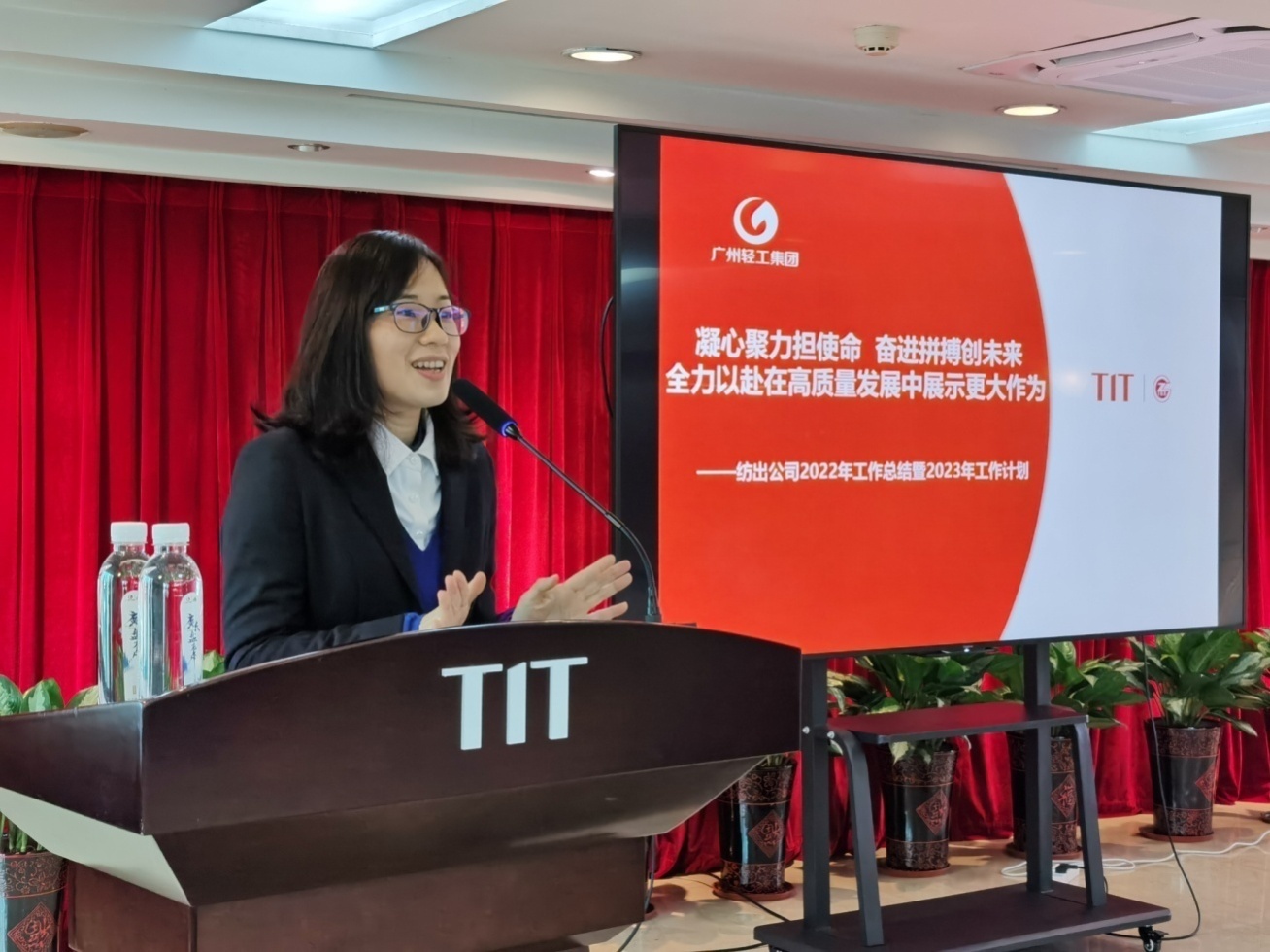 1月17日下午,广州纺织品进出口集团有限公司2023年工作会议在广德大厦15楼隆重召开。会议由纺出公司副总经理张菁主持。纺出公司党政领导班子、中层干部及先进代表参加会议。