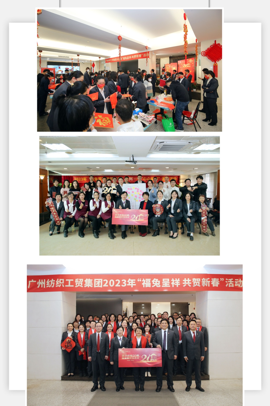 纺织工会还为广大员工精心策划了2023年“福兔呈祥 共贺新春”主题活动,通过“幸福挥春”、“万柿如意迎春手工”、“心心相印游园”等系列项目,弘扬传统文化,让职工寄语心中的希望和对美好生活的憧憬。此外,春节期间,将市总工会派发的100张“岭南印象园”的门票赠送留穗过年的一线职工,丰富广大职工的精神文化生活,让他们感受到广府新春浓郁的年味文化,把吉祥之春拥入怀中!