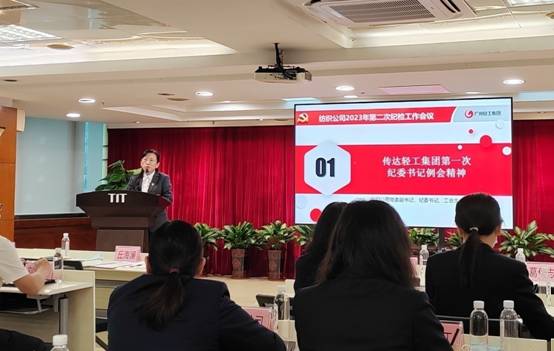 党委副书记、纪委书记、工会主席丘海澜传达了广州轻工集团第一次纪委书记例会精神,指出了今年纪委四项重要工作:一是加强二十大精神学习,要带头学、督促学和主题学,严防“灯下黑”;二是做好纠治“四风”工作,管住钱和权;三是坚持严的主基调,做好审调工作;四是要坚持“四位一体”监督,发挥好纪委作用,工作中要把握好“三不”,做到十个“有”。