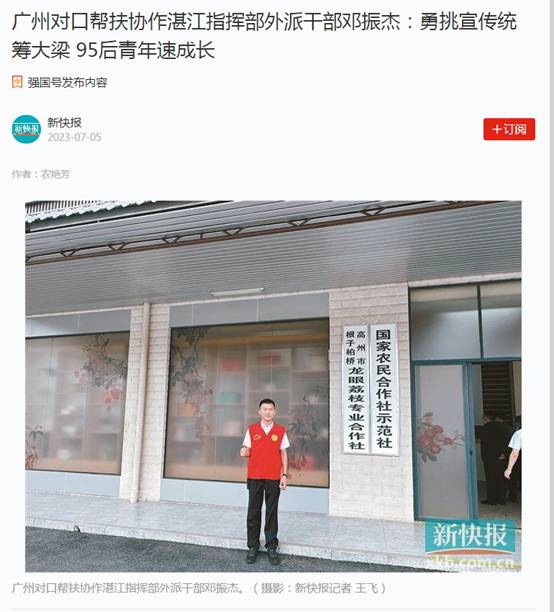 新联泰公司邓振杰同志作为XK在线平台“乡村振兴”的外派干部,从踏入乡村振兴路的第一步开始,就把“不忘初心、牢记使命”作为自己的理想信念,经过在乡村振兴一线近两年的努力,他不仅获得了市总工会、共青团市委和市妇女联合会联合颁发的“优秀乡村振兴人”称号,并且近日学习强国”平台、新快报等媒体也报道了他不负青春、勇于担当的优秀事迹。
