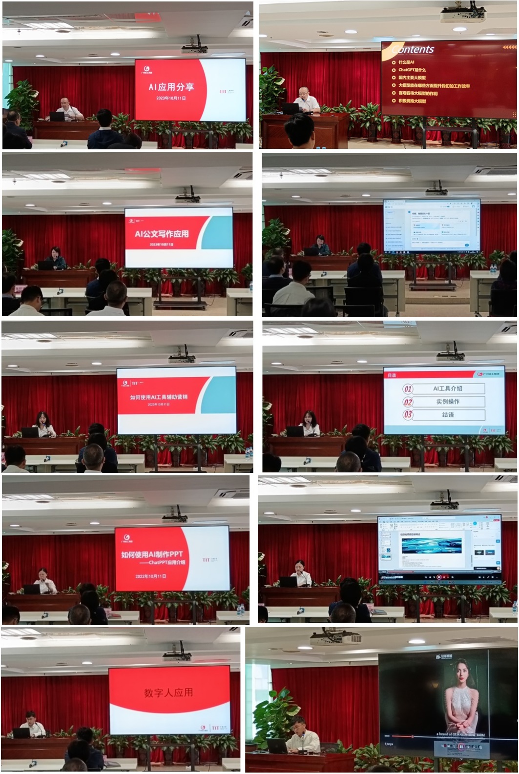 会上,企业发展部相关负责同事从AI应用现状简介、公文辅助写作、AI数智营销、PPT辅助生成、数字虚拟人播报和直播应用等五大方面,结合最新的AI应用场景及公司业务发展、员工实际工作场景等,深入浅出地讲解了如何使用AI为我们日常工作提供便利,为公司业务发展赋能。