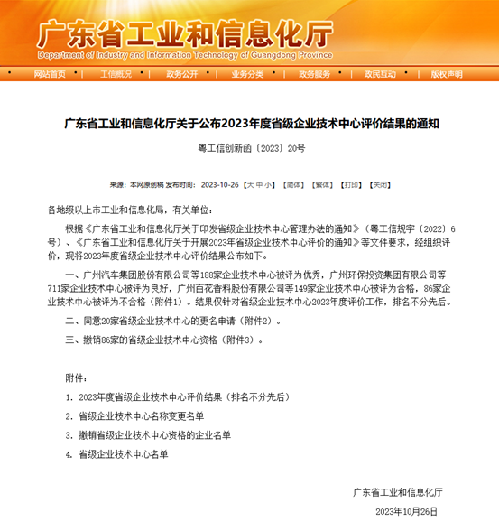 近日,广东省工业和信息化厅公布2023年度省级企业技术中心评价结果,XK在线平台有限公司顺利通过本次评价,连续多年获评省级企业技术中心称号。